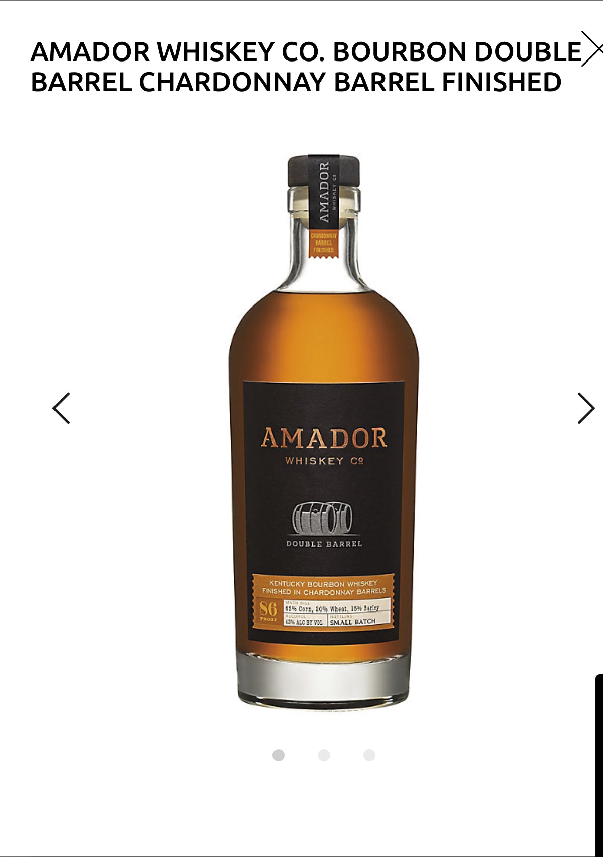 Amador Whiskey Co. Bourbon Double Barrel Chardonnay Barrel Finished 86
