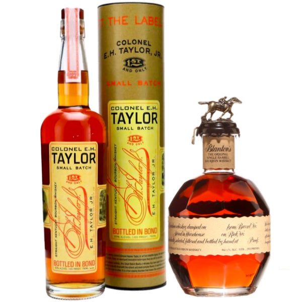 Introducing the ultimate bourbon whiskey combo for the true connoisseur: Colonel E.H. Taylor, Jr. Small Batch & Blanton's Single Barrel Bourbon Whiskey.